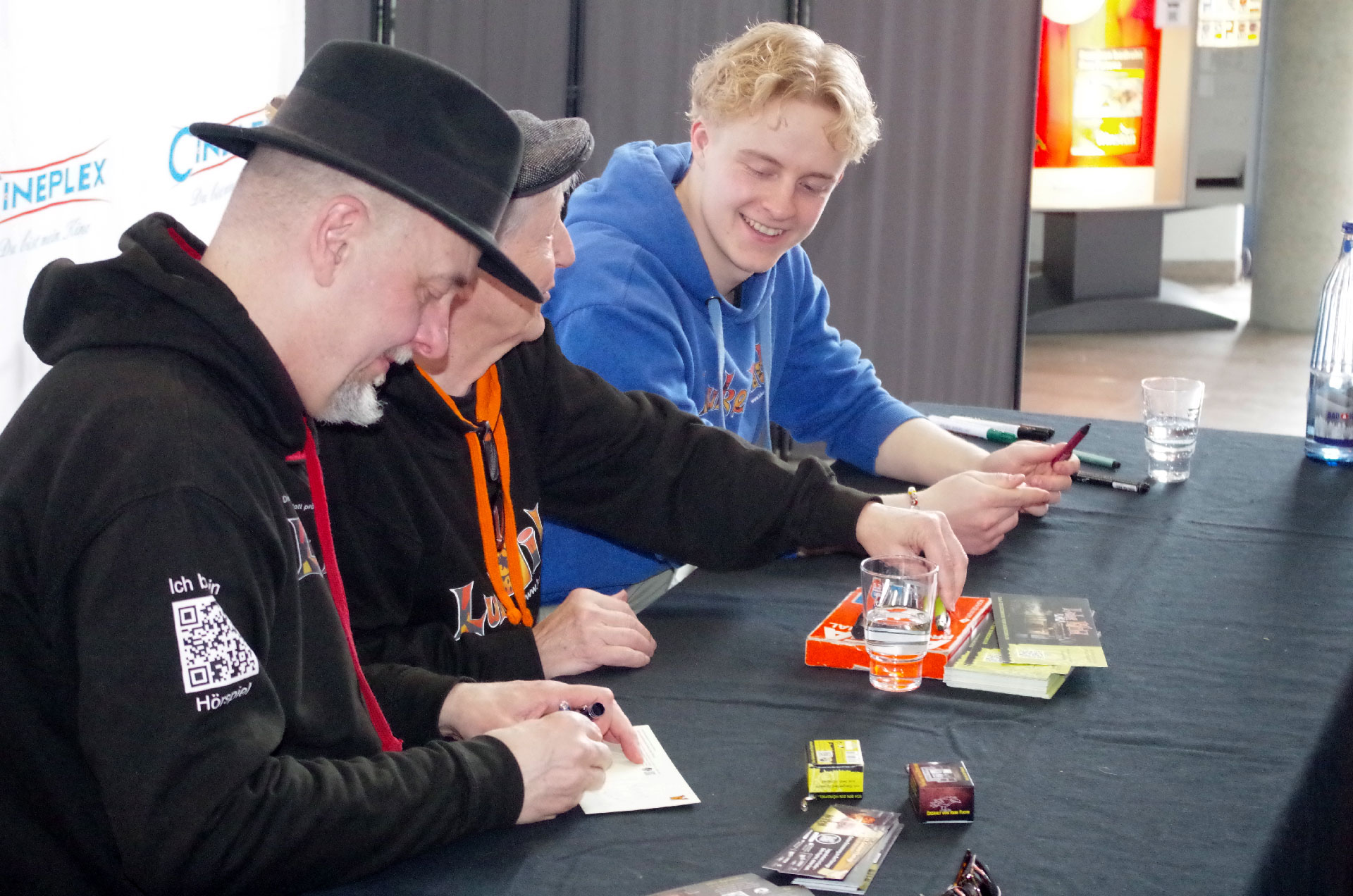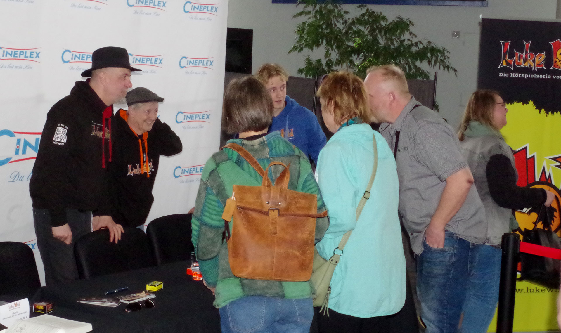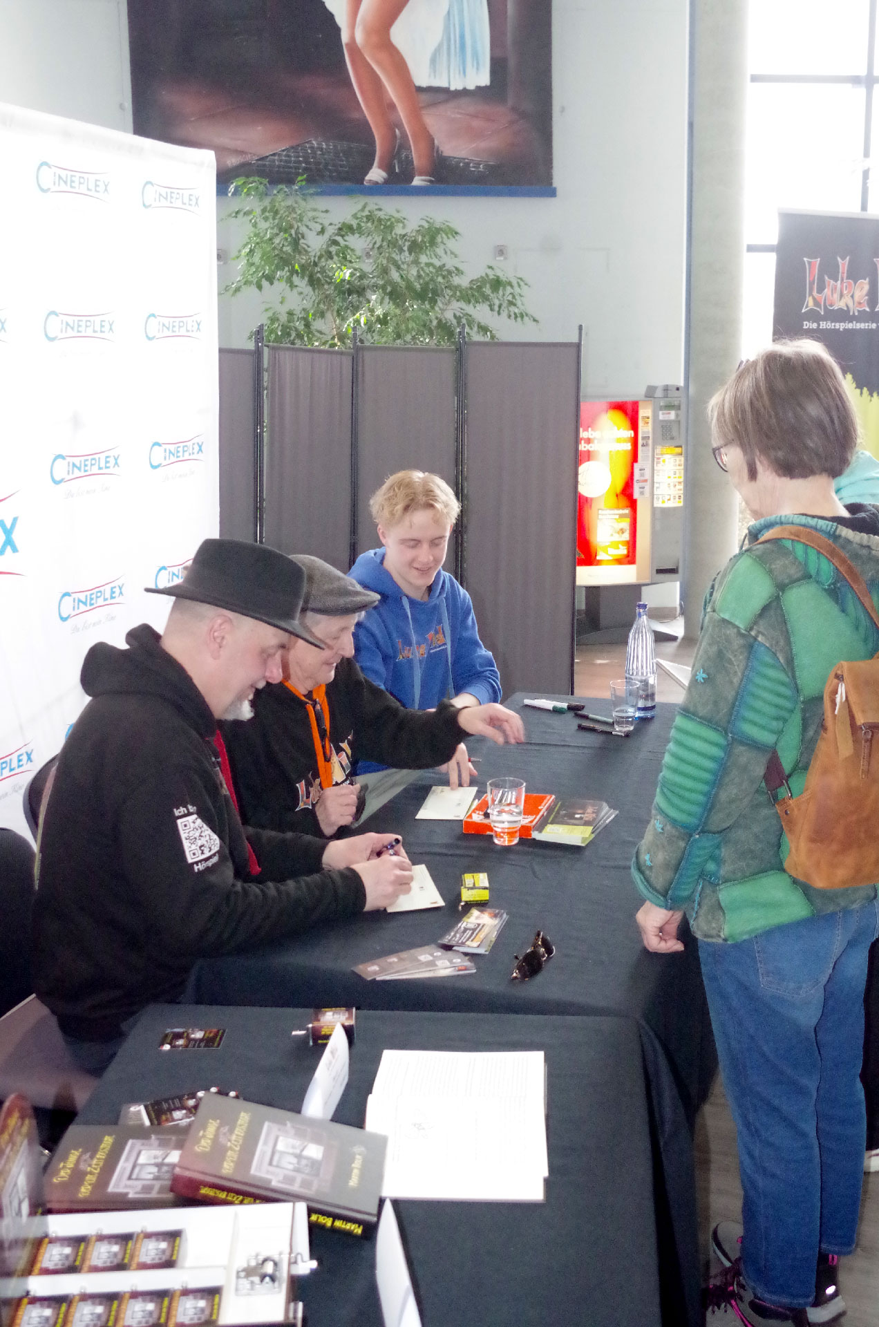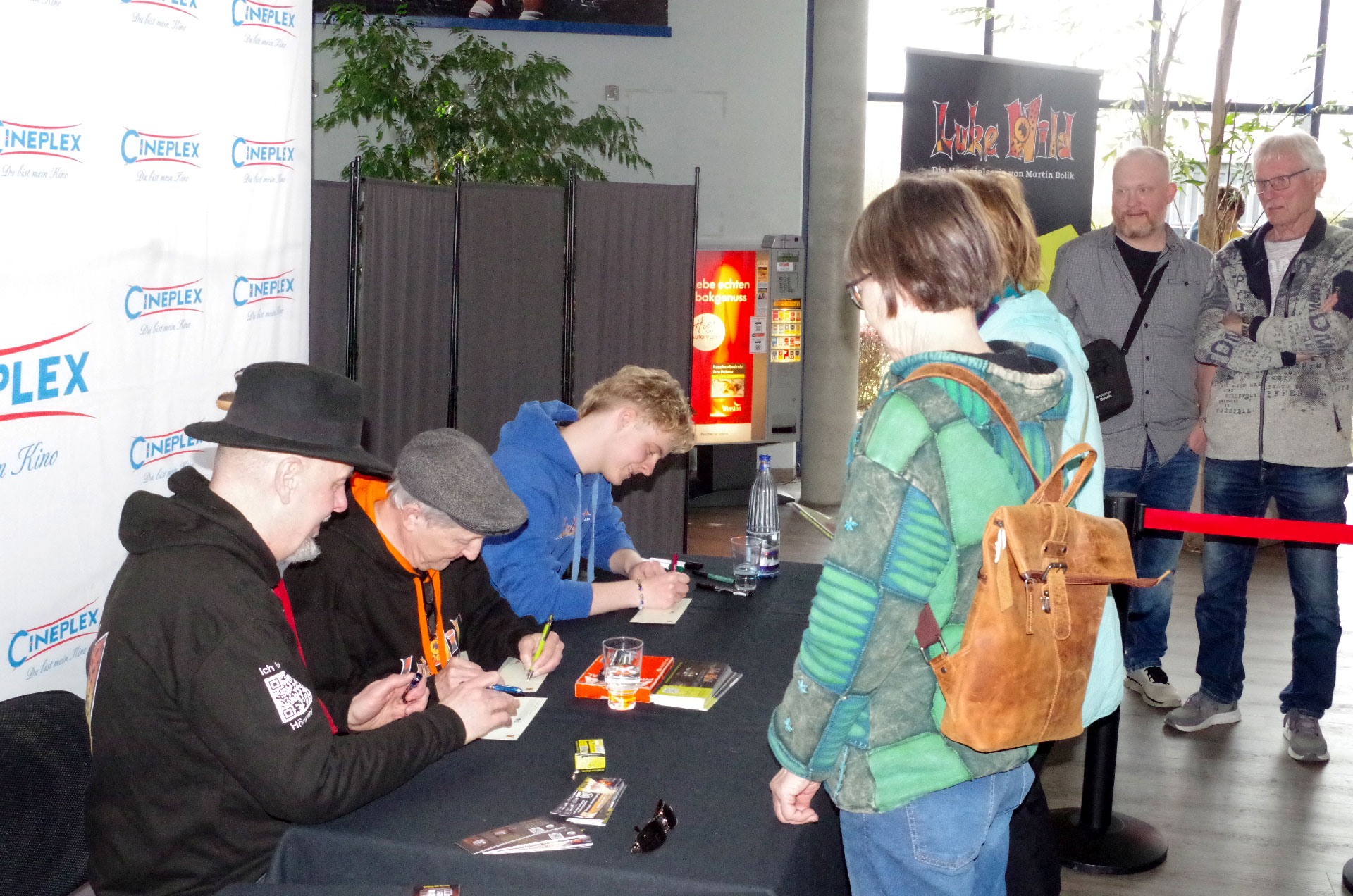 Am 11.04.2026 gab es die Gelegenheit im Cineplex Goslar für Autogramme und einen kleinen Plausch mit: Santiago Ziesmer (bekannt als die Stimme von Spongebob und der Rabe Pjotr von Der Brockenbande), Erik Elias Bolik (Luke Wild von der Brockenbande), Martin Bolik (Autor „Der Junge der Die Zeit besiegte“ und die Stimme von Paul von der Brockenbande). Die zahlreichen Fans bewiesen viel Herzblut und Ausdauer bis sie ihr Autogramm und ein persönliches Foto mit den Sprechern abholen konnetn.